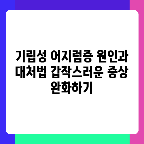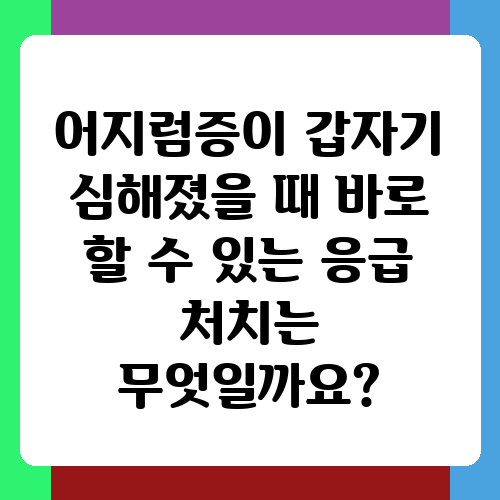 어지럼증이 갑자기 심해졌을 때 바로 할 수 있는 응급 처치는 무엇일까요?