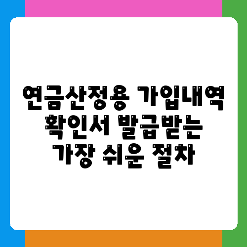 퇴직을 앞두고, 혹은 퇴직 후 연금을 신청하려는데 가입내역 확인서가 필요하다면 어떻게 해야 할까요? 복잡한 절차에 막막함을 느끼시는 분들이 많을 거예요. 하지만 생각보다 간단하게 확인서를 발급받을 수 있답니다. 이 글에서는 연금산정용 가입내역 확인서를 발급받는 가장 쉬운 방법을 자세하게 알려드릴게요. 여러분의 소중한 시간을 절약할 수 있도록 최대한 간결하고 명확하게 설명해 드리겠습니다.