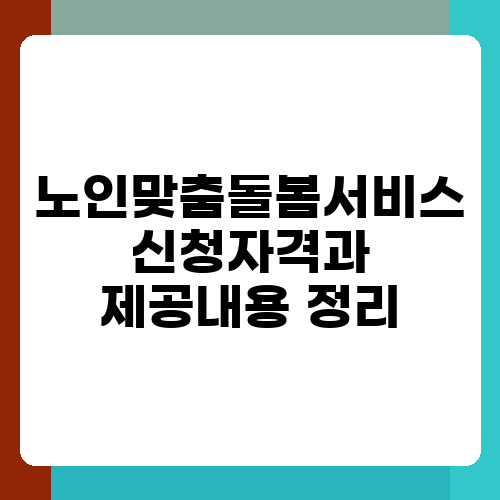 어르신들의 건강하고 행복한 노년 생활을 위해 마련된 노인맞춤돌봄서비스! 하지만 정확히 어떤 서비스인지, 누가 신청할 수 있는지 궁금하신 분들이 많으실 거예요. 이 글에서는 노인맞춤돌봄서비스의 신청 자격과 제공되는 다양한 내용을 쉽고 자세하게 알려드리려고 합니다. 함께 알아보고 어르신들께 필요한 정보를 얻어가세요.