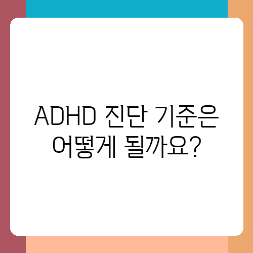 ADHD 진단은 DSM-5(정신질환 진단 및 통계 매뉴얼 제5판) 또는 ICD-11(국제 질병 분류 제11판)의 기준에 따라 이루어집니다. 두 기준 모두 주의력 결핍, 과잉행동, 충동성 중 적어도 6가지 이상의 증상이 6개월 이상 지속되어야 합니다. 또한, 증상이 여러 상황(예