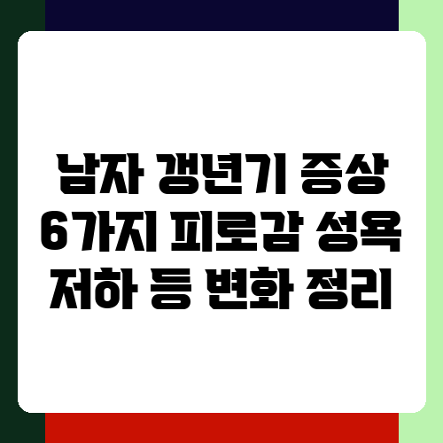 40대 후반부터 50대에 접어들면서 몸에 여러 변화를 느끼시는 분들이 많더라고요. 갑자기 찾아온 피로감, 예전 같지 않은 성욕, 그리고 감정 기복까지. 혹시 남자 갱년기 증상을 의심하고 계신가요? 이 글에서는 남자 갱년기의 대표적인 6가지 증상과 그 변화에 대해 자세히 알아보고, 어떻게 대처해야 하는지 함께 살펴보도록 하겠습니다. 건강한 중년 생활을 위해 꼭 필요한 정보이니, 끝까지 읽어보세요.