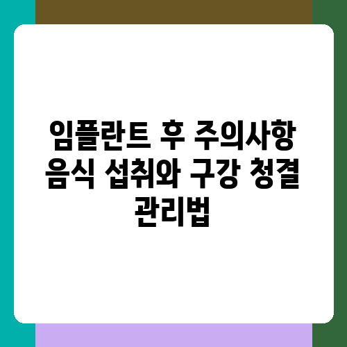 임플란트 시술 후, 성공적인 임플란트 생활을 위해서는 철저한 관리가 필수적입니다. 섬세한 관리만이 오랫동안 건강한 치아를 유지할 수 있게 해주죠. 임플란트는 자연치아와 달리 관리가 소홀하면 염증이나 감염 등의 문제가 발생할 수 있어 더욱 신경 써야 합니다. 이 글에서는 임플란트 후 식습관과 구강 청결 관리에 대해 자세히 알려드리겠습니다. 제대로 된 관리를 통해 건강하고 편안한 삶을 누리시길 바랍니다.