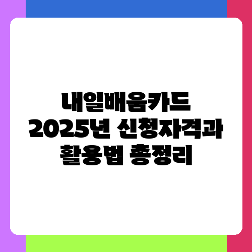 내일배움카드, 2025년에도 똑똑하게 활용하고 싶으신가요? 많은 분들이 궁금해하시는 내일배움카드 신청 자격부터 효과적인 활용법까지, 알짜 정보만 모아서 꼼꼼하게 정리해 드릴게요. 취업 준비나 직무 전환을 생각하고 계신다면, 이 글이 여러분의 든든한 길잡이가 될 거예요. 함께 시작해볼까요?