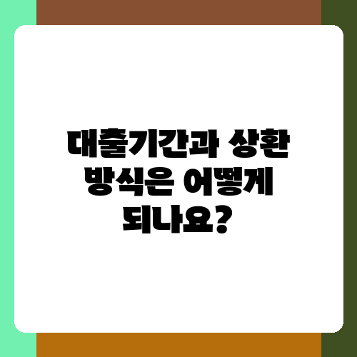 대출 기간은 사업의 특성과 상환 능력을 고려하여 결정되며, 보통 1년에서 5년 정도의 기간을 설정하는 경우가 많습니다. 상환 방식 또한 여러 가지가 있는데요, 일반적으로 원리금균등분할상환 방식이나 원금균등분할상환 방식 중에서 선택할 수 있습니다. 상환 방식 선택에 따라 매월 상환금액이 달라지므로, 자신의 사업 현황과 재정 상황을 고려하여 신중하게 결정해야 합니다. 대출 기간과 상환 방식에 대한 충분한 이해 없이 결정하면 추후 어려움을 겪을 수 있으므로, 전문가와의 상담을 통해 최적의 계획을 세우는 것을 추천드립니다. 사전에 상환 계획을 철저히 세워두면 예상치 못한 상황에 대처할 수 있습니다.