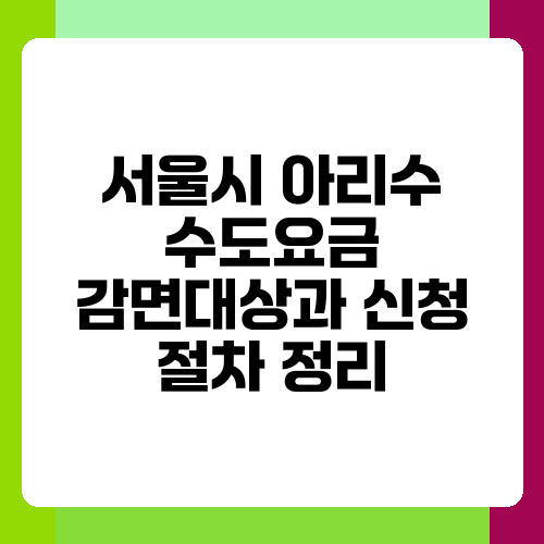 서울에 살면서 매달 내는 수도요금, 부담되지 않으세요? 알고 보면 놓치고 있는 감면 혜택이 있을 수 있어요. 오늘은 서울시 아리수 수도요금 감면 대상과 신청 방법에 대해 자세히 알려드릴게요. 함께 꼼꼼히 살펴보고, 혜택 받을 수 있는지 확인해 보세요!
