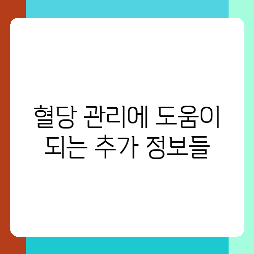 혈당 관리에 도움이 되는 다양한 정보들이 있습니다. 예를 들어, 스트레스 관리도 혈당에 영향을 미칠 수 있으므로, 스트레스 해소 방법을 찾는 것이 중요해요. 충분한 수면을 취하고, 취미 활동을 통해 스트레스를 관리해 보세요. 또한, 식품 첨가물이나 가공식품 섭취를 줄이고, 자연 식품 위주로 식단을 구성하는 것이 좋습니다. 혈당을 낮추는 데 도움이 되는 특정 영양소가 함유된 음식들을 찾아 섭취하는 것도 도움이 됩니다. 가장 중요한 건 꾸준히 노력하는 것입니다. 하루아침에 효과가 나타나지는 않겠지만, 꾸준히 노력하면 건강한 혈당 수치를 유지할 수 있습니다. 포기하지 말고 꾸준히 실천해 보세요!