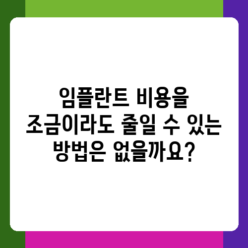 임플란트 비용을 조금이라도 줄일 수 있는 방법은 없을까요?