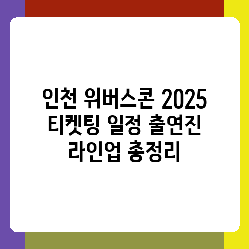 드디어 기다리고 기다리던 인천 위버스콘 2025 소식이 들려오네요! 많은 팬들이 벌써부터 설렘을 감추지 못하고 있을 거라고 생각합니다. 티켓팅 경쟁이 치열할 것으로 예상되는 만큼, 미리 정보를 꼼꼼하게 확인하고 준비하는 것이 중요하다고 생각해요. 이 글에서는 인천 위버스콘 2025의 티켓팅 일정과 출연진 라인업에 대한 정보를 총정리하여 여러분께 제공하려고 합니다. 함께 자세히 알아볼까요?