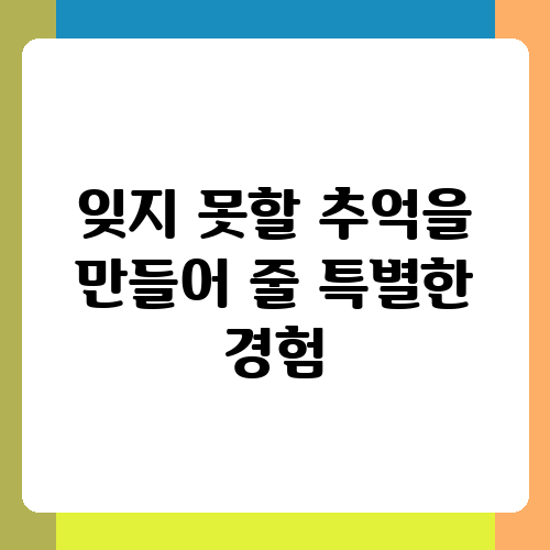 잊지 못할 추억을 만들어 줄 특별한 경험