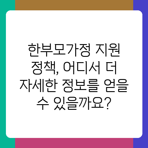 한부모가정 지원 정책, 어디서 더 자세한 정보를 얻을 수 있을까요?