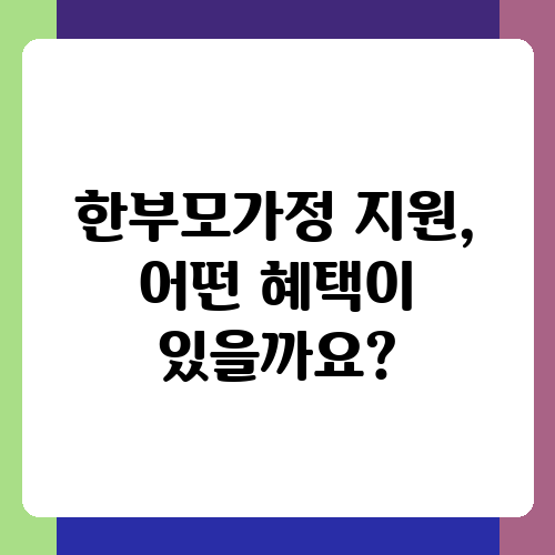 한부모가정 지원, 어떤 혜택이 있을까요?