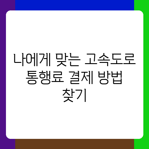 나에게 맞는 고속도로 통행료 결제 방법 찾기