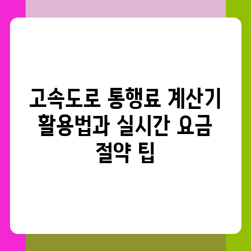 고속도로 통행료 계산기 활용법과 실시간 요금 절약 팁