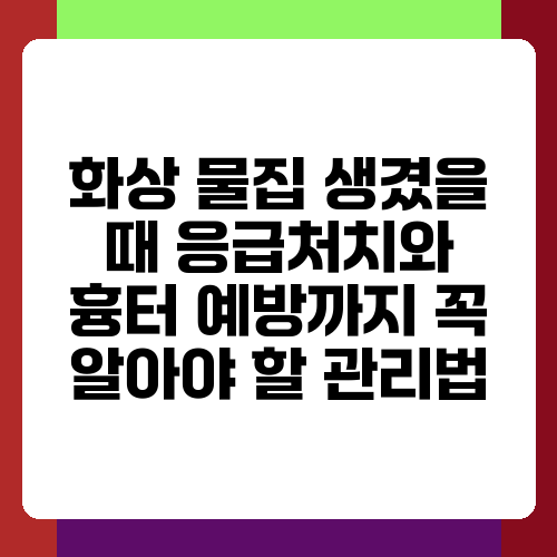 햇살 좋은 날, 야외 활동 중에 갑자기 화상을 입었거나 뜨거운 물체에 데였을 때, 빨갛게 부어오르고 물집이 잡히는 경험을 해보셨나요? 정말 당황스럽고 아플 뿐만 아니라, 흉터까지 남을까 봐 걱정이 이만저만이 아니죠. 이 글에서는 화상 물집이 생겼을 때 어떻게 응급처치를 하고, 흉터 없이 관리하는 방법을 자세하게 알려드릴게요. 함께 화상으로 인한 고민을 해결해 나가 보아요.