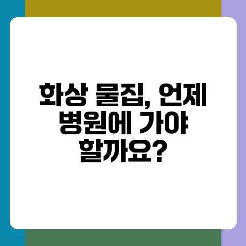 화상의 정도에 따라 병원 방문 여부를 결정해야 합니다. 물집이 크거나 깊이가 깊은 화상, 화상 부위가 넓은 경우에는 즉시 병원을 찾아야 합니다. 또한, 통증이 심하거나 열이 나거나, 화상 부위에 감염 증상이 나타나는 경우에도 병원에 가서 치료받는 것이 좋습니다. 물집이 터져서 고름이 나오거나, 주변 조직이 부어오르거나, 붉어지는 등의 증상이 나타나면 감염의 가능성이 높으므로 즉시 병원에 방문하여 치료받아야 합니다. 단순한 화상일 경우에도 전문적인 조언을 듣고 관리 방법을 제대로 알아두면 흉터 예방에 도움이 될 수 있습니다. 미리 전문가의 도움을 받는 것을 두려워하지 마세요.