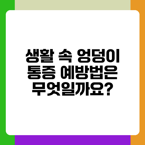 마무리하며, 엉덩이 통증은 단순한 불편함이 아니라 생활의 질을 떨어뜨릴 수 있는 심각한 문제일 수 있습니다. 오늘 나눈 정보들이 여러분의 엉덩이 통증 완화에 조금이나마 도움이 되었으면 합니다. 지금 바로 자신의 자세를 점검하고, 필요하다면 전문가의 도움을 받아 건강한 엉덩이를 만들어보세요! 혹시 더 궁금한 점이 있다면 언제든지 댓글을 남겨주세요. 함께 건강한 생활을 만들어 나가요!