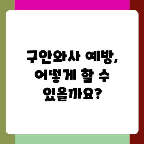 구안와사는 예방이 중요한 질병입니다. 스트레스를 줄이고 충분한 수면을 취하는 것이 가장 기본적인 예방법입니다. 과도한 스트레스는 면역력을 저하시켜 구안와사 발생 위험을 높일 수 있기 때문에, 평소 스트레스 관리에 신경 쓰는 것이 중요해요. 또한, 규칙적인 운동과 건강한 식습관을 유지하는 것도 중요합니다. 균형 잡힌 영양 섭취는 면역력을 강화하고 건강한 신체 상태를 유지하는 데 도움을 줍니다. 그리고 감기에 걸리지 않도록 주의해야 하는데요, 감기는 구안와사의 발병과 관련이 있을 수 있다고 합니다. 따라서, 개인 위생에 신경 쓰고, 감기 증상이 나타나면 빨리 치료하는 것이 좋습니다. 규칙적인 생활 습관과 건강 관리를 통해 구안와사를 예방하는 데 최선을 다하는 것이 좋겠죠. 예방은 최선의 치료라는 말처럼, 구안와사 예방에 힘쓰는 것이 가장 중요합니다.