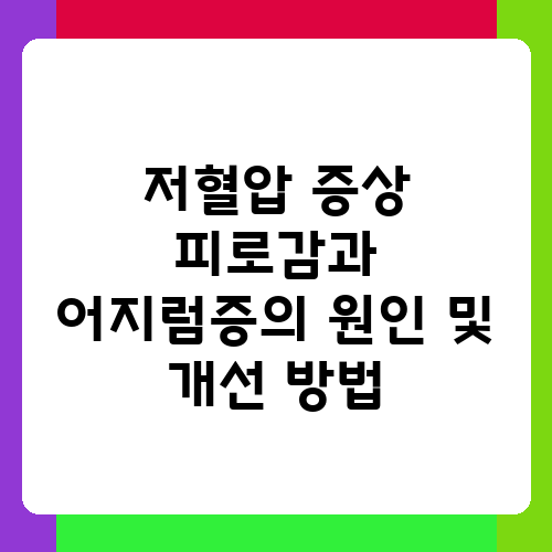 저혈압으로 인해 힘들어하시는 분들 많으시죠? 매일 아침 일어나면 몸이 무겁고, 갑자기 어지러움을 느껴 힘드셨던 경험, 누구나 한 번쯤 있으실 거예요. 저혈압은 단순히 혈압이 낮은 것뿐만 아니라, 피로감과 어지럼증을 유발하여 일상생활에 큰 불편을 초래할 수 있습니다. 오늘은 저혈압으로 인한 피로감과 어지럼증의 원인을 파헤치고, 쉽게 따라 할 수 있는 개선 방법들을 알려드리겠습니다. 함께 건강한 삶을 되찾아 보아요.