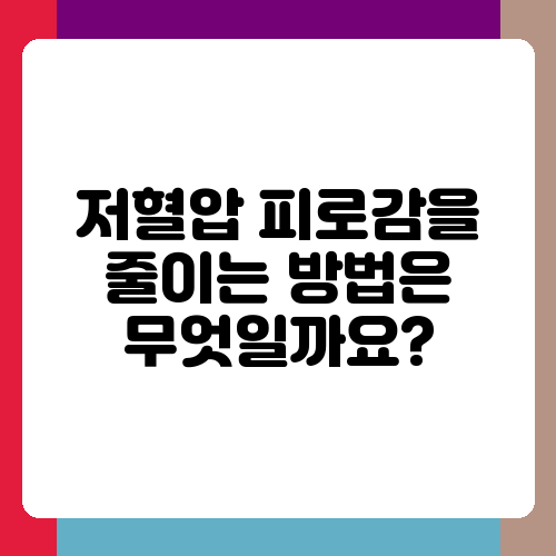 저혈압 피로감을 줄이는 방법은 무엇일까요?