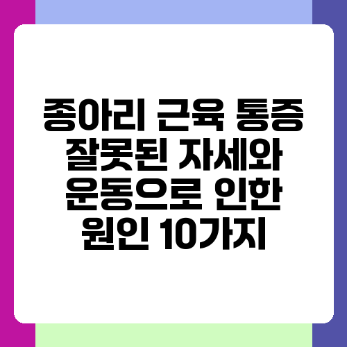 종아리 통증 때문에 고생하시나요? 요즘처럼 활동량이 많은 시대에 종아리 통증은 흔한 증상 중 하나입니다. 하지만 통증의 원인을 제대로 알지 못하면, 증상이 더 악화될 수 있고, 치료도 어려워질 수 있어요. 오늘은 종아리 근육 통증을 유발하는 잘못된 자세와 운동 습관 10가지를 자세히 알아보고, 건강한 종아리를 유지하는 방법을 함께 생각해 보도록 하겠습니다. 나의 건강한 삶을 위해 꼼꼼히 살펴보세요!