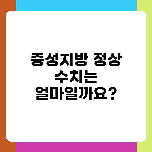 중성지방의 정상 수치는 보통 150mg/dL 미만으로 봅니다. 하지만 개인의 건강 상태와 다른 수치에 따라 다를 수 있으므로, 정확한 수치는 의사와 상담하는 것이 가장 좋습니다. 단순히 수치만 보고 걱정하기보다는, 전체적인 건강 상태를 파악하고 개인에게 맞는 관리 방법을 찾는 것이 중요해요. 예를 들어, 콜레스테롤 수치나 혈압 등 다른 지표와 함께 고려해야 정확한 평가를 할 수 있습니다. 건강검진 결과를 받았다면, 반드시 의사와 상담하여 개인에게 맞는 관리 계획을 세우도록 하세요. 건강검진 결과는 단순한 수치가 아니라, 여러분의 건강을 위한 중요한 정보입니다.