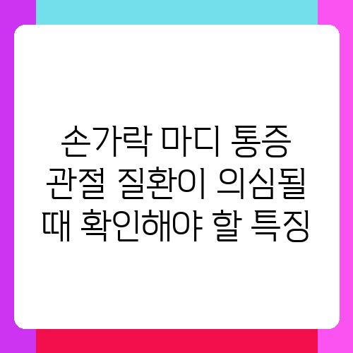 손가락 마디가 욱신거리고 아픈 경험, 누구나 한 번쯤 있으시죠? 가벼운 통증은 잠깐 쉬면 괜찮아지지만, 만약 통증이 지속되거나 일상생활에 불편함을 준다면 관절 질환을 의심해봐야 합니다. 혹시 나도 관절 질환일까 걱정되시나요? 이 글에서는 손가락 마디 통증이 관절 질환일 때 나타나는 특징들을 자세히 알아보고, 조기에 대처하는 방법을 알려드리겠습니다. 미리 알아두면 혹시 모를 위험으로부터 스스로를 지킬 수 있으니까요.