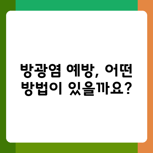 방광염은 방광에 세균 감염이 발생하여 염증을 유발하는 질환입니다. 방광염 예방을 위해서는 개인위생을 철저히 하는 것이 중요합니다. 특히 배뇨 후에는 앞에서 뒤로 닦는 것이 좋고, 꽉 끼는 속옷보다는 통풍이 잘되는 속옷을 착용하는 것이 좋습니다. 또한, 충분한 수분 섭취는 소변을 통해 세균을 배출하는 데 도움이 되기 때문에 중요합니다. 평소 물을 충분히 마시는 습관을 가지도록 노력하세요. 하지만 무엇보다 중요한 것은 증상이 의심된다면 빠르게 병원을 찾아 진료를 받는 것입니다. 방광염은 적절한 치료를 받지 않으면 만성 질환으로 이어질 수 있으므로, 초기에 치료하는 것이 매우 중요합니다. 저는 예전에 방광염으로 고생한 적이 있는데, 초기에 병원에 가지 않아 고생했던 기억이 있습니다. 빠른 치료가 중요하다는 점을 다시 한번 강조하고 싶습니다.