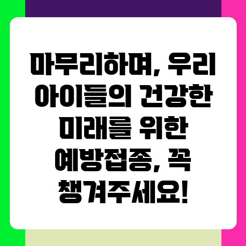 마무리하며, 우리 아이들의 건강한 미래를 위한 예방접종, 꼭 챙겨주세요!