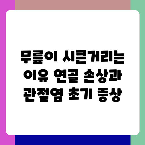 무릎이 시큰거려서 불편함을 느끼신 적 있으세요? 저도 가끔 무릎이 시큰거리거나 욱신거리는 느낌을 받는데요, 처음에는 별거 아니겠지 하고 넘겼지만, 시간이 지날수록 통증이 심해지거나 일상생활에 불편을 느낄 정도가 되면 걱정이 되더라고요. 사실 무릎 시큰거림은 단순한 피로 때문일 수도 있지만, 연골 손상이나 관절염의 초기 증상일 수도 있답니다. 오늘은 무릎이 시큰거리는 이유와 연골 손상 및 관절염 초기 증상을 자세히 알아보고, 무릎 건강을 지키는 방법을 함께 알아보도록 하겠습니다.